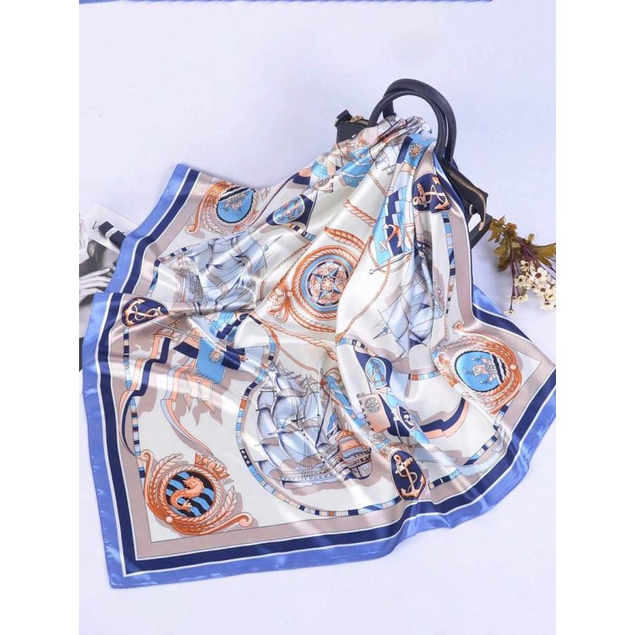 アクセサリー レディース スカーフ 女性向け春夏ファッション ブルー セイルボートプリント シルクスカーフ、ヘッドバンド、バンダナ