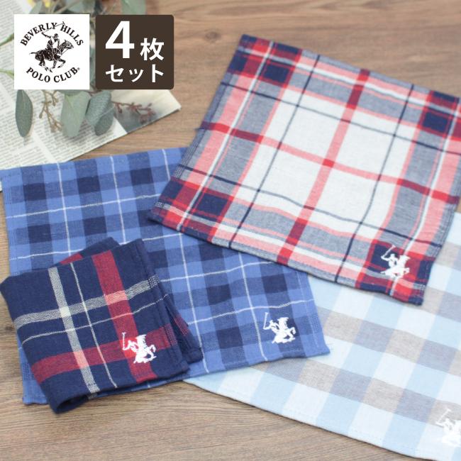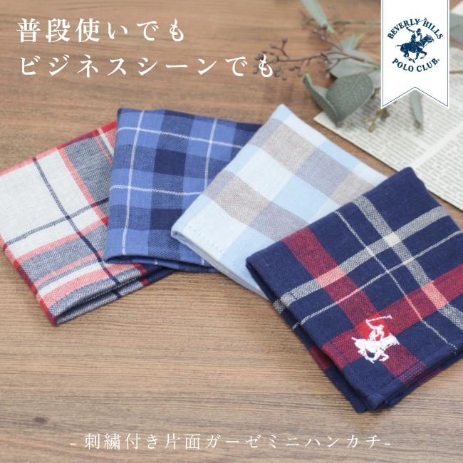 【商品名】BEVERLY HILLS POLO CLUB 刺繍付き片面ガーゼミニハンカチ4枚セット