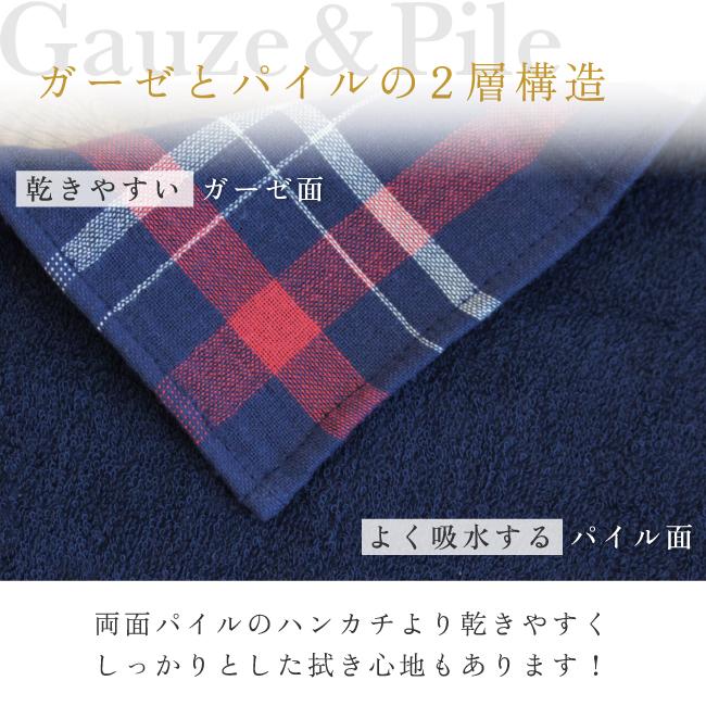 ●《乾きやすい》ガーゼ面、《水分をよく吸水する》パイル面の2層構造で、2つの素材の良いところ詰めた1枚。