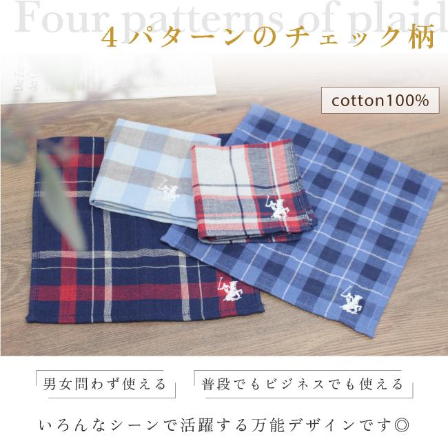 ガーゼハンカチ タオルハンカチ 4枚セット 綿100 チェック柄 おしゃれ プレゼント 退職 お礼の品 刺繍 ロゴ 速乾 ガーゼ 23×23 男女兼用 ギフト ポイント利用