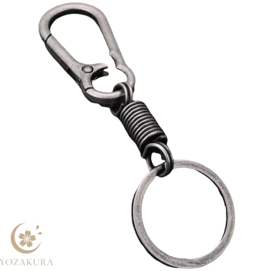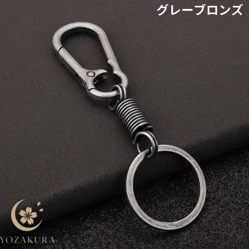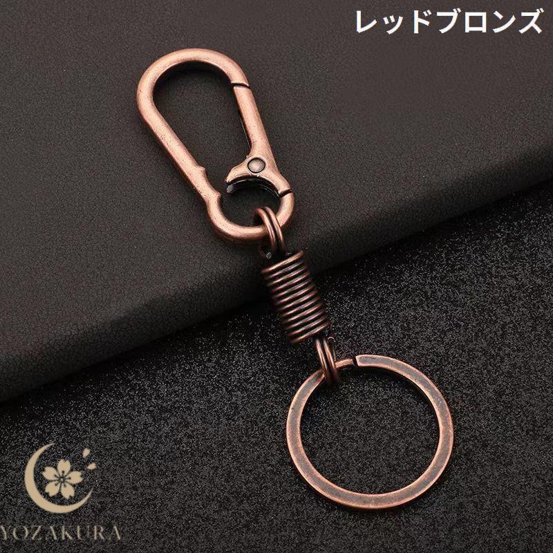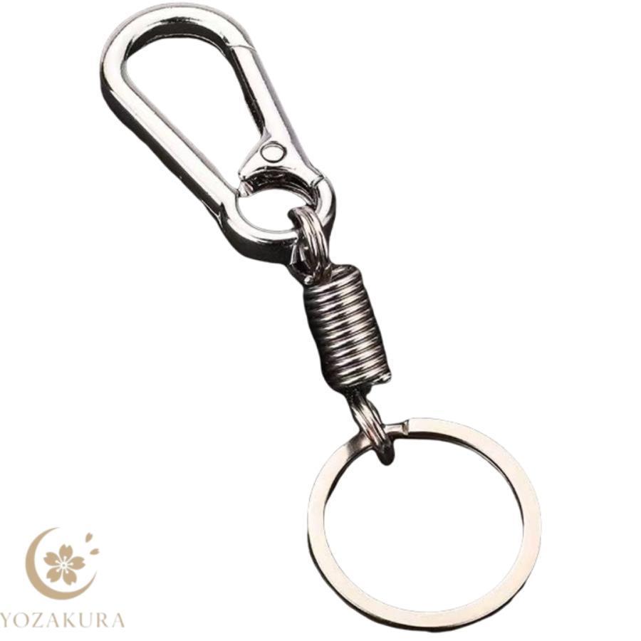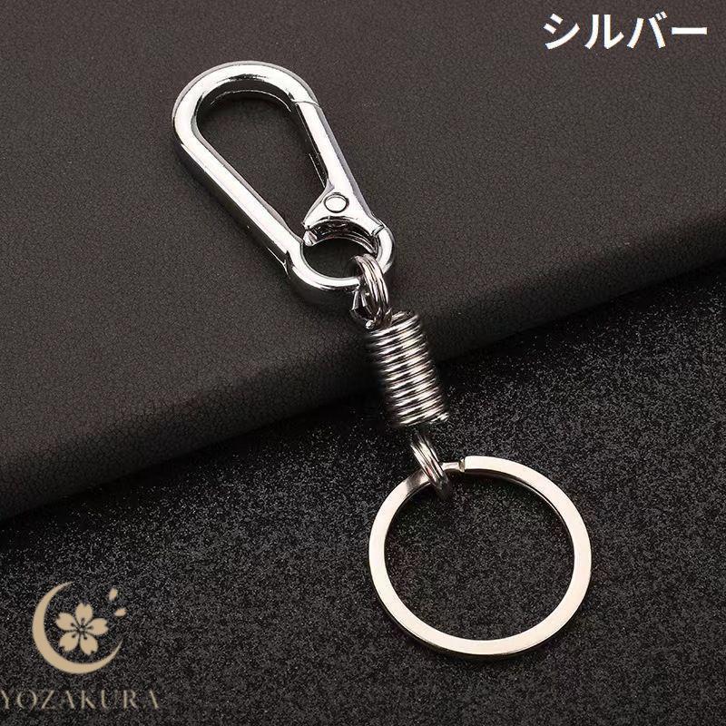 キーホルダー キーリング 金属製 カラビナフック スプリング バネ コイル スマートキー 鍵 車 バイク 自転車 紛失防止 おしゃれ