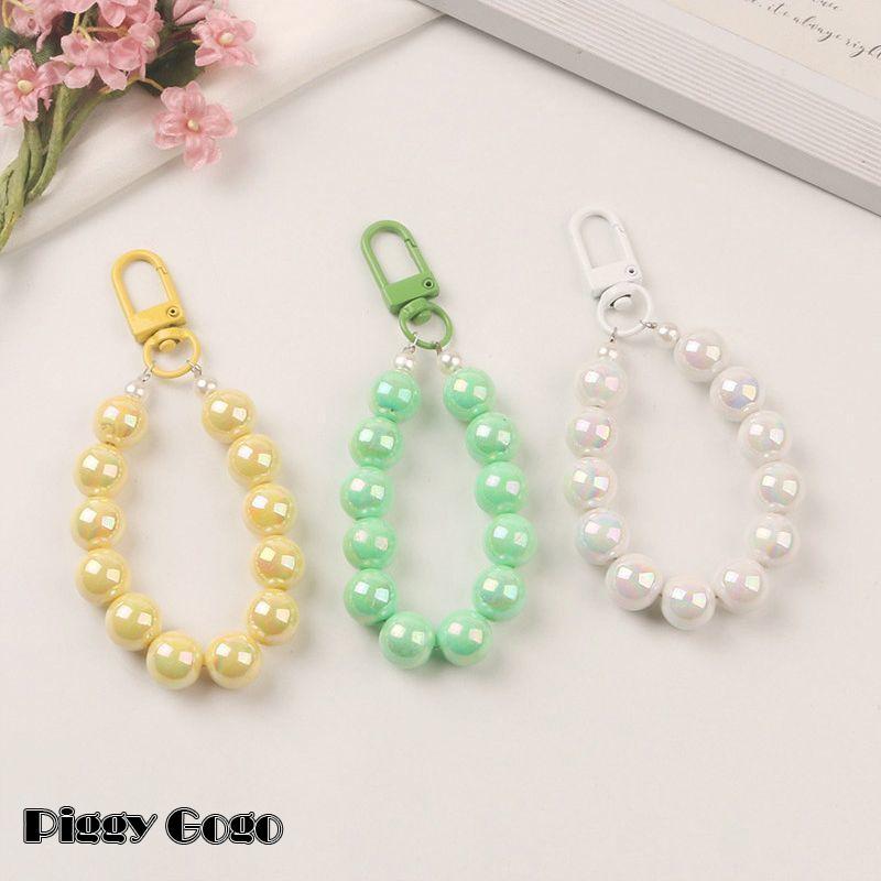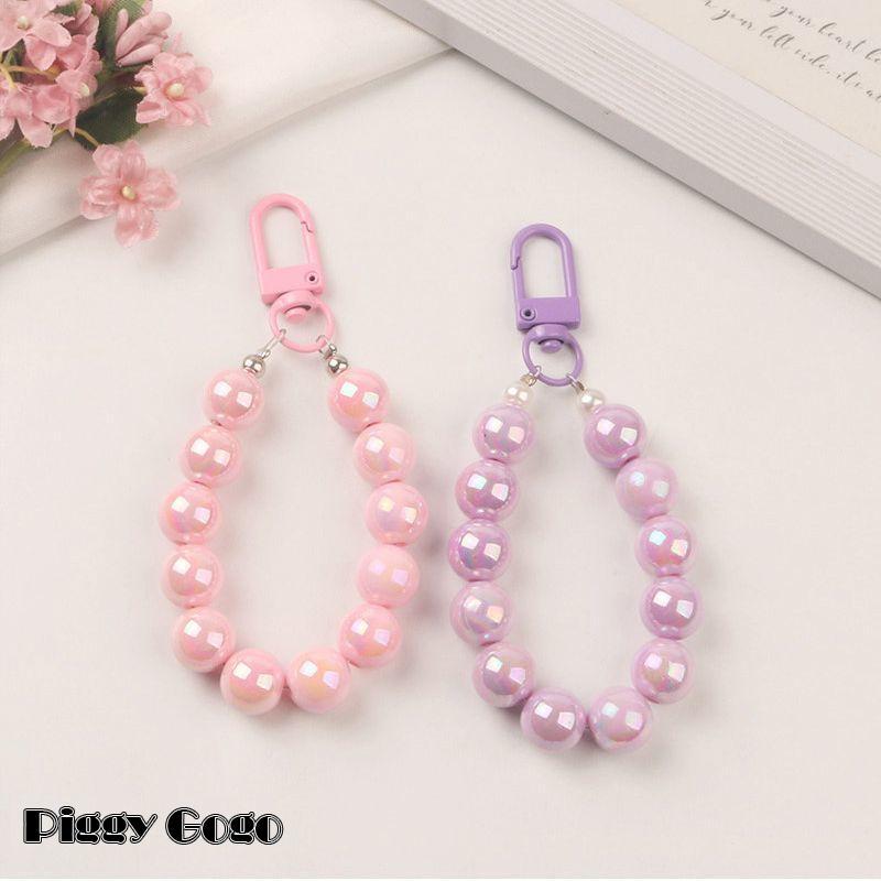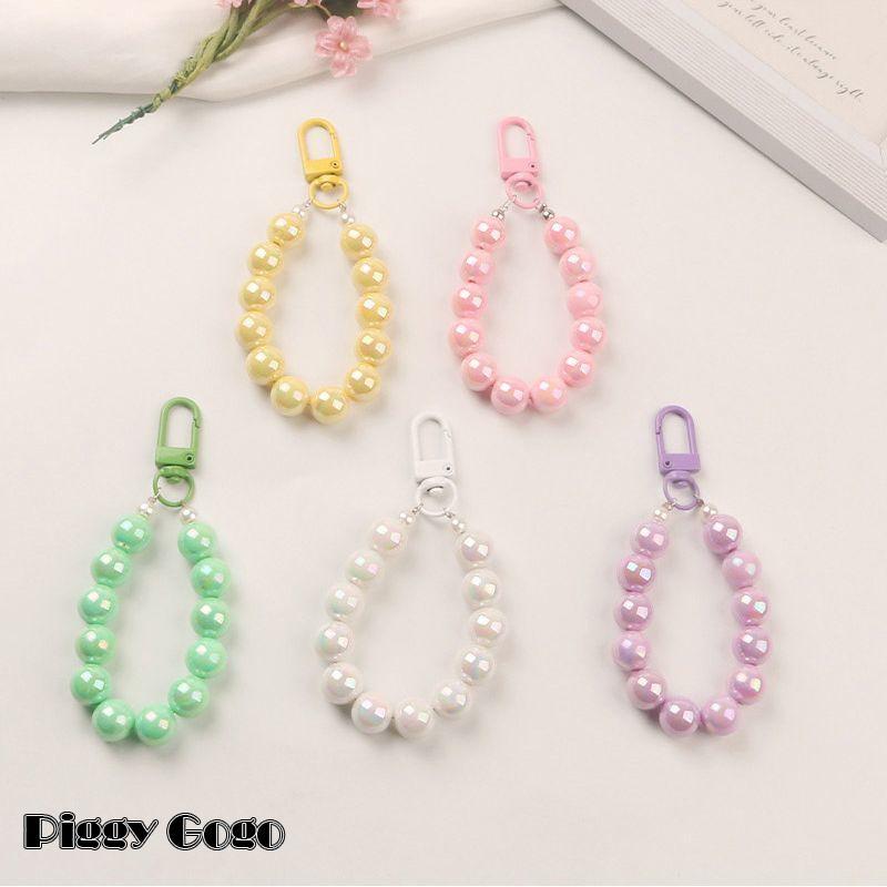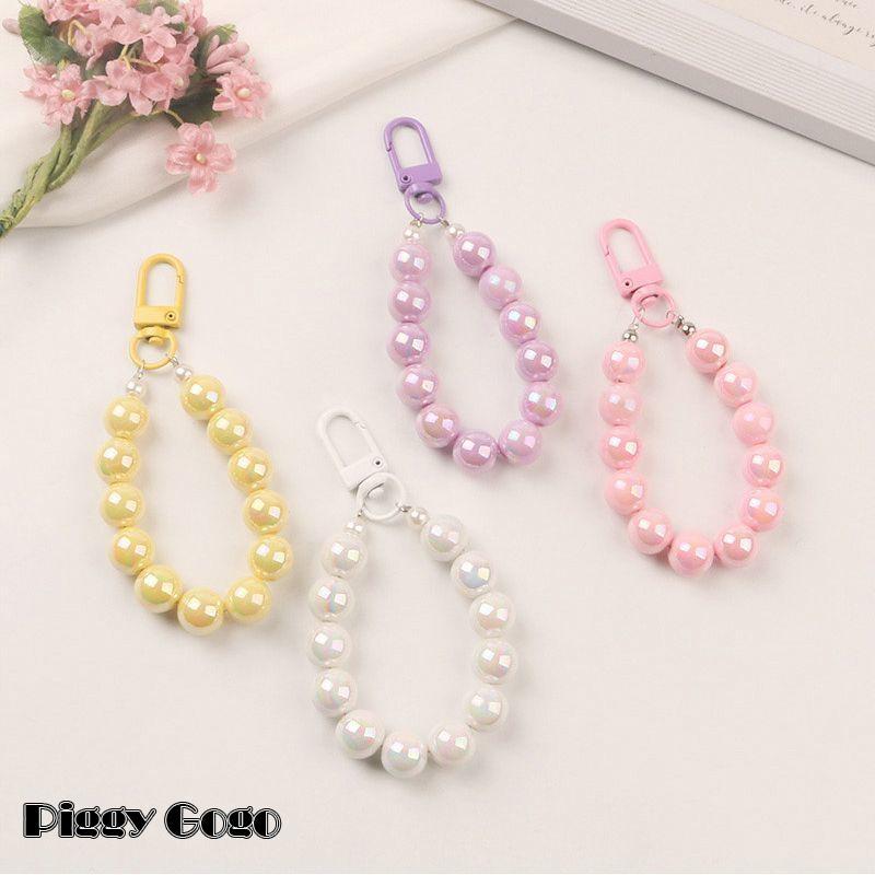 キーホルダー レディース バッグチャーム キーチェーン ストラップ ビーズ 大粒 パステルカラー フック かわいい おしゃれ 高級感 イヤホンケース