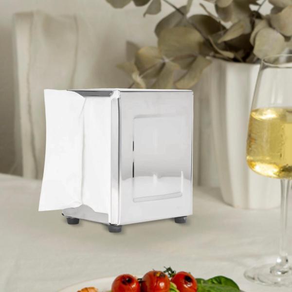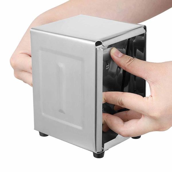 ステンレススチール製ティッシュボックスカバー、フェイシャルナプキンホルダー長方形両面調節可能ディスペンサー、カウンタートップ乾燥機シート用