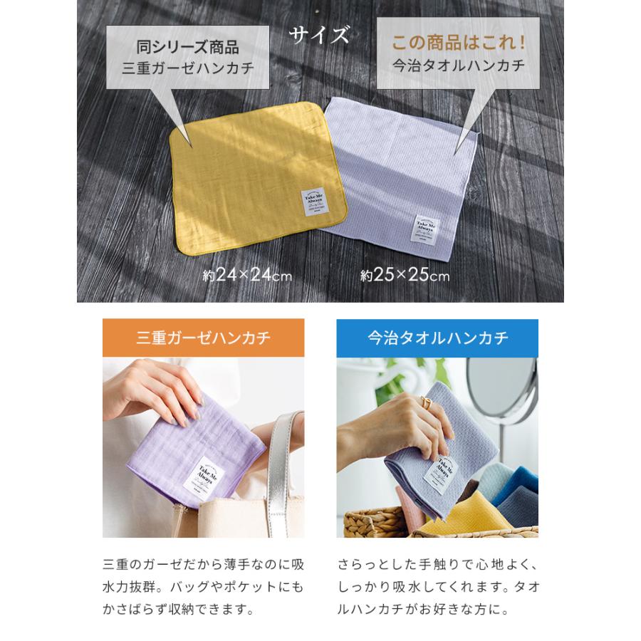 今治タオル ハンカチ 3枚セット Take Me タオルハンカチ 選べる3枚セット 8色 25cm×25cm 日本製 綿100% 片面パイル