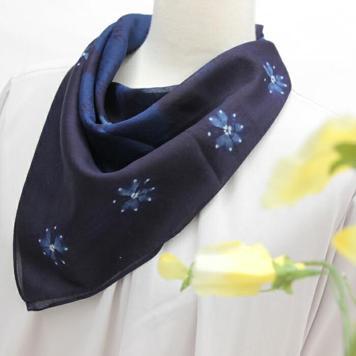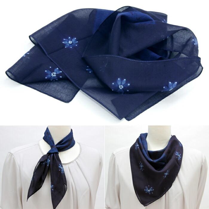 本藍染絞りスカーフ 60cm 60×60 スカーフ レディース 婦人 日本製 国産 ジャパンブルー 藍染 本藍染 天然灰汁発酵建 伝統工芸 阿波藍 藍秀 贈答品 プレゼント ギフト 母の日 父の日 綿 メンズ 紳士