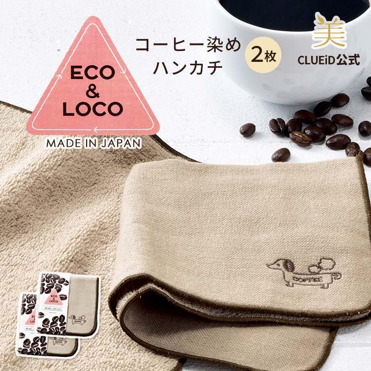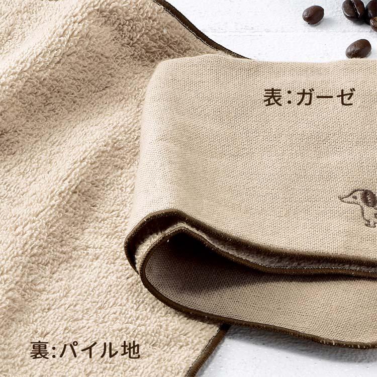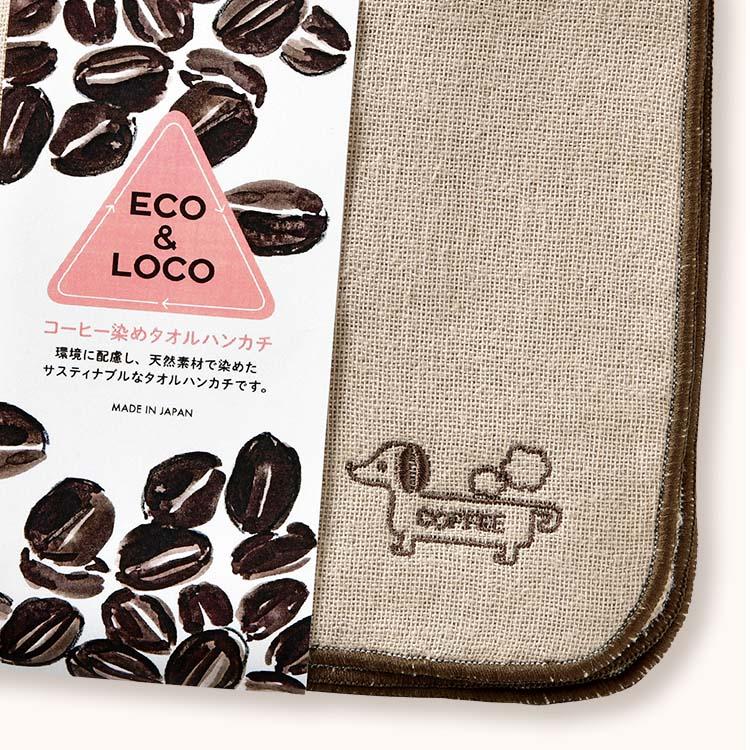 2枚セット ハンカチタオル ギフト ダックスフンド グッズ 雑貨 犬 ガーゼ コットン 日本製「ECO&LOCO コーヒー染め タオルハンカチ 2枚組」 09s
