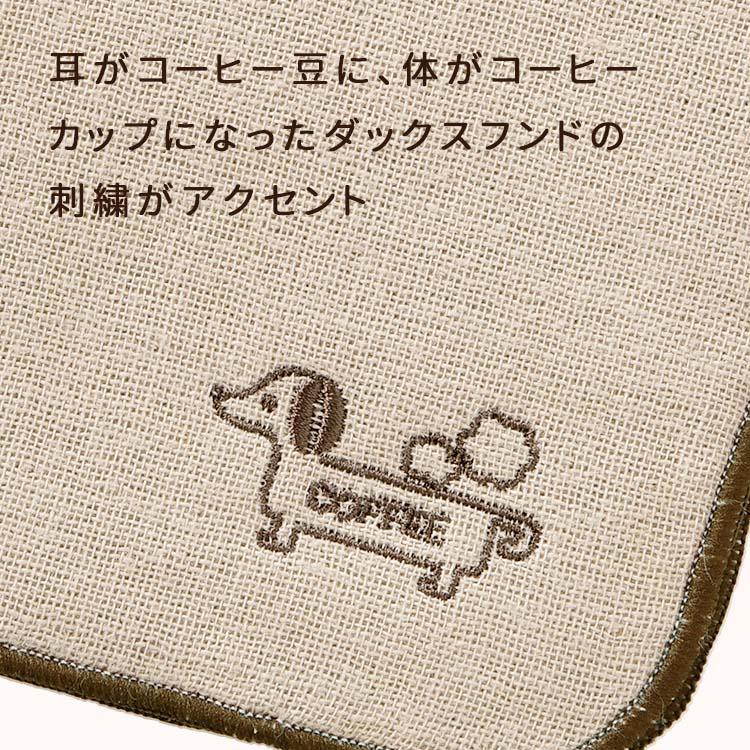 ダックスフンドの刺繍は耳がコーヒー豆になっているのがポイントです。