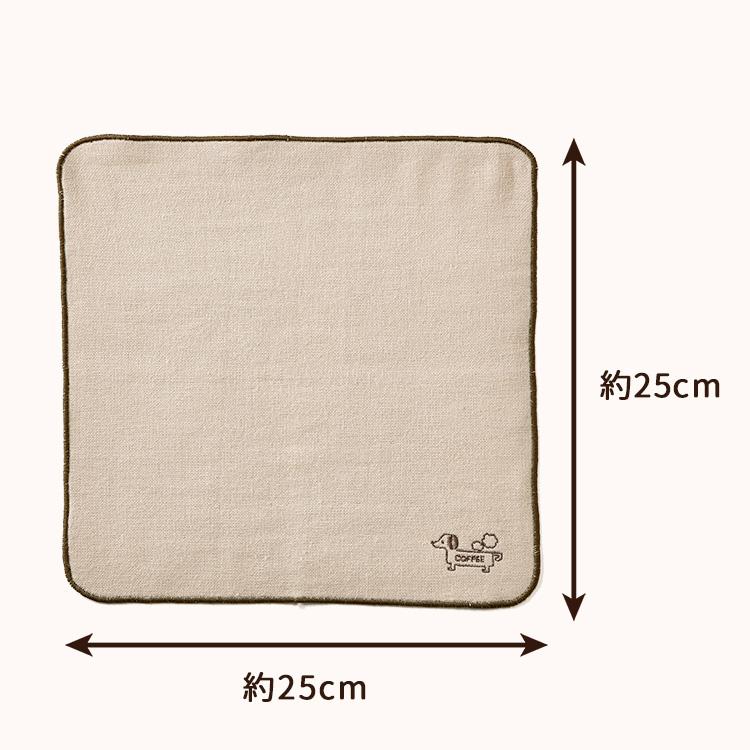 ナチュラルなベージュ〜淡いブラウンカラーに、かわいいダックスフンドの刺繍が入った上質なパイル&ガーゼのミニハンカチです。