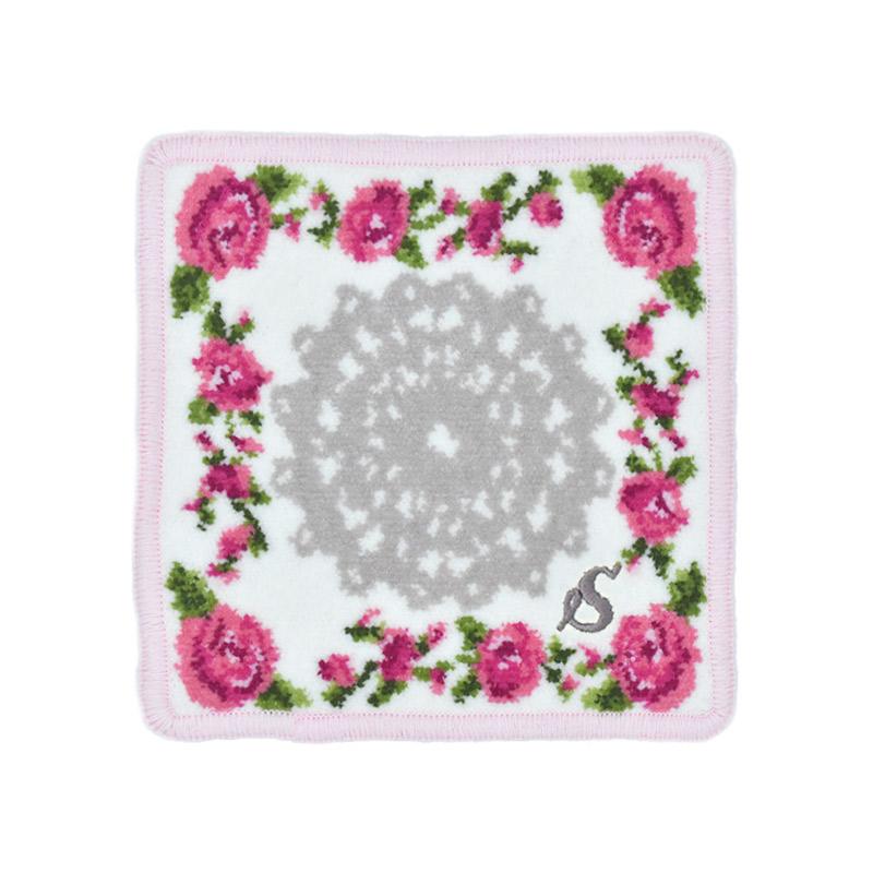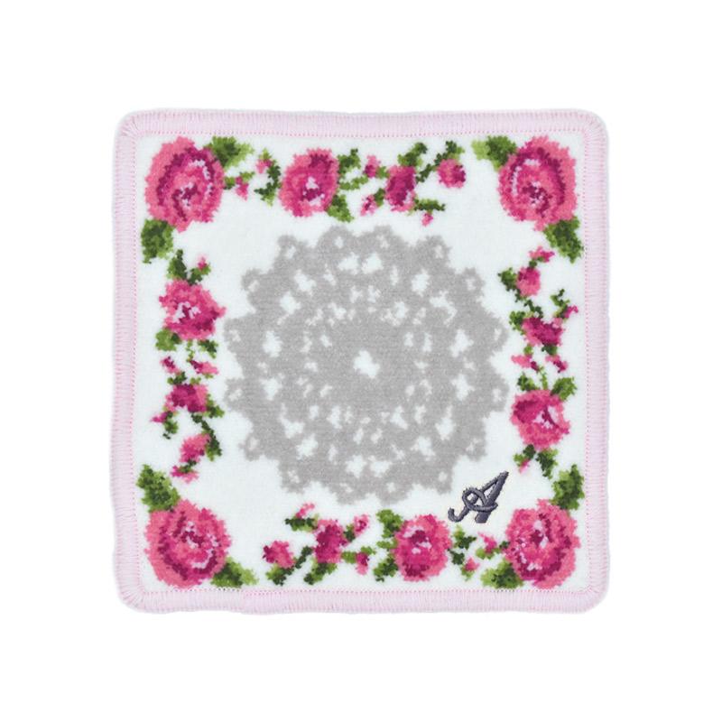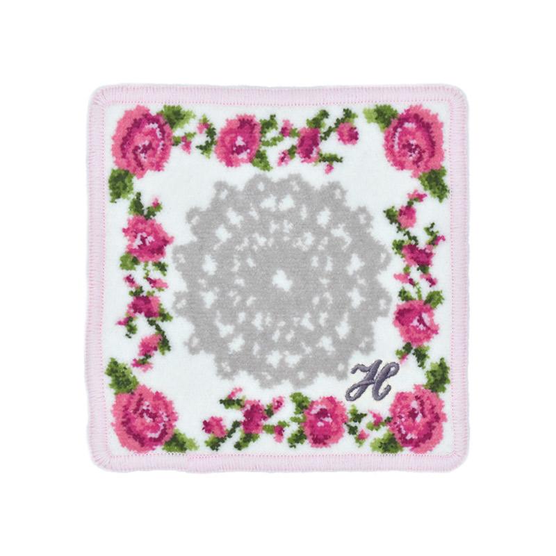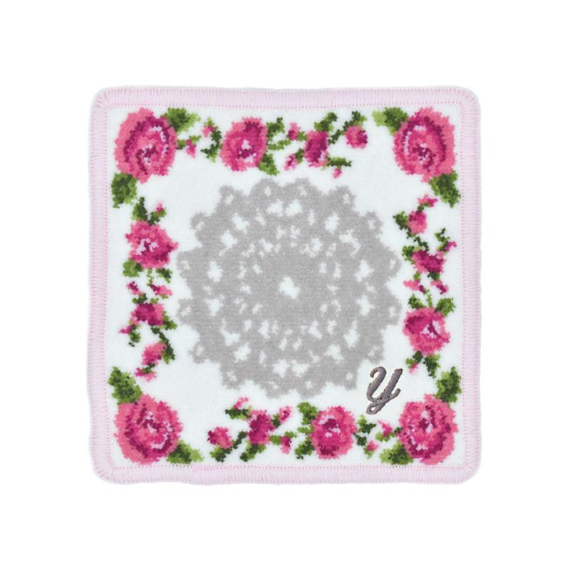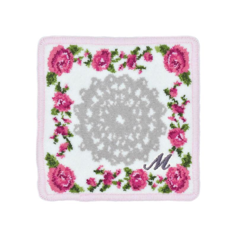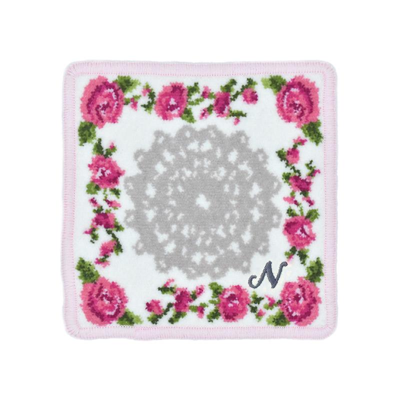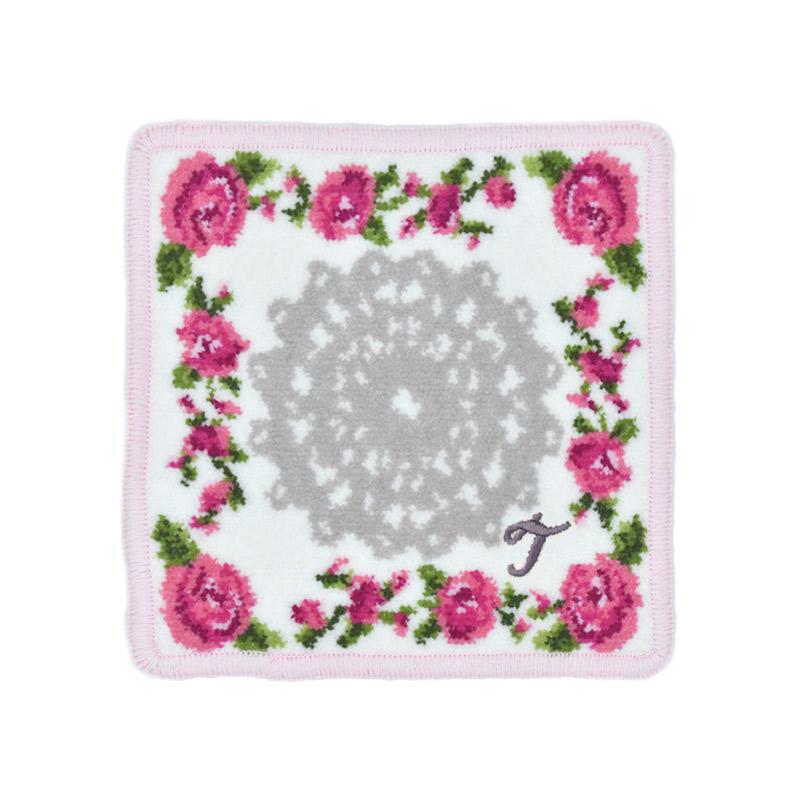 Enjeau プレゼント 女性 実用的 タオルハンカチ ハンカチ 刺繍イニシャル ミニ リトルローズ 日本製 ギフト シェニール織 アーンジョー 40代 50代 60代