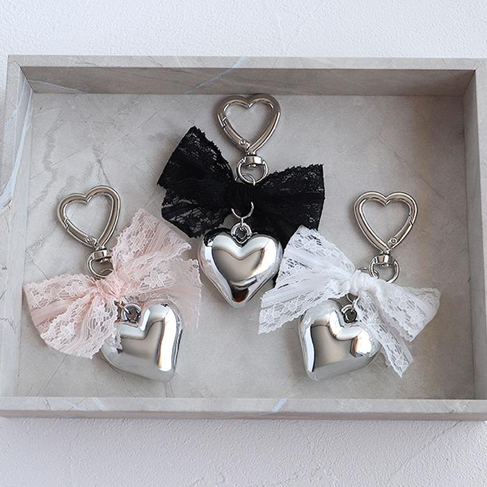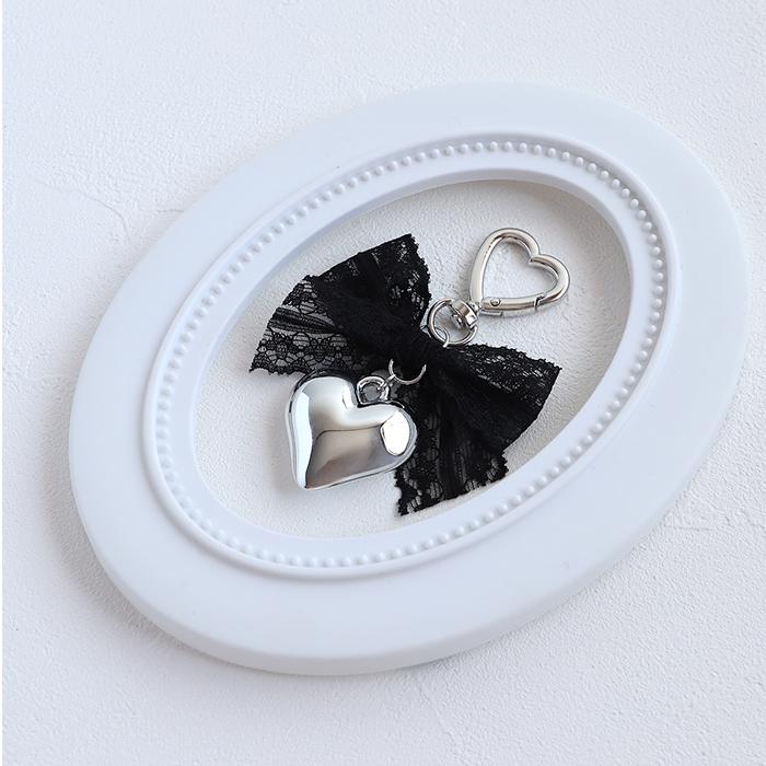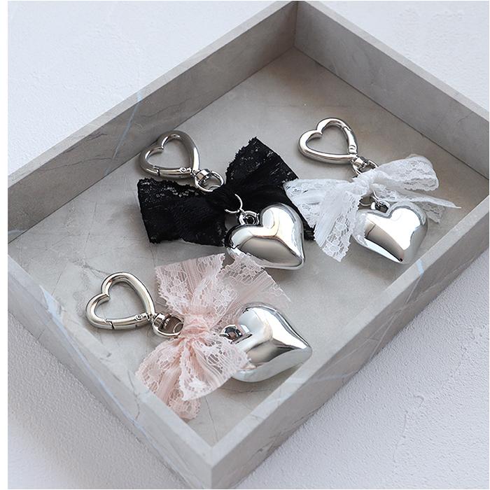 RORA キーリング 通販 ローラ アリス キーホルダー キーチャーム ハート型 カラビナ リボン レース ハート チャーム シルバー おしゃれ かわいい オシャレ
